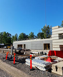 Työmaalla on käynnissä ensimmäisen kerroksen holvin raudoitukset sekä talotekniikan asennukset.